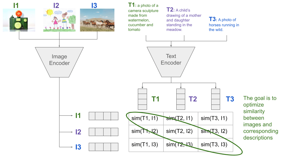 Coming back to the zebra example, we could describe the concept of the zebra as follows: “A horse-like animal with black and white stripes”. The embedding of this description should be close to the images of zebras, allowing for classification based on the similarity. With common objects we can be even more direct and provide a prompt: “a photo of a zebra”.