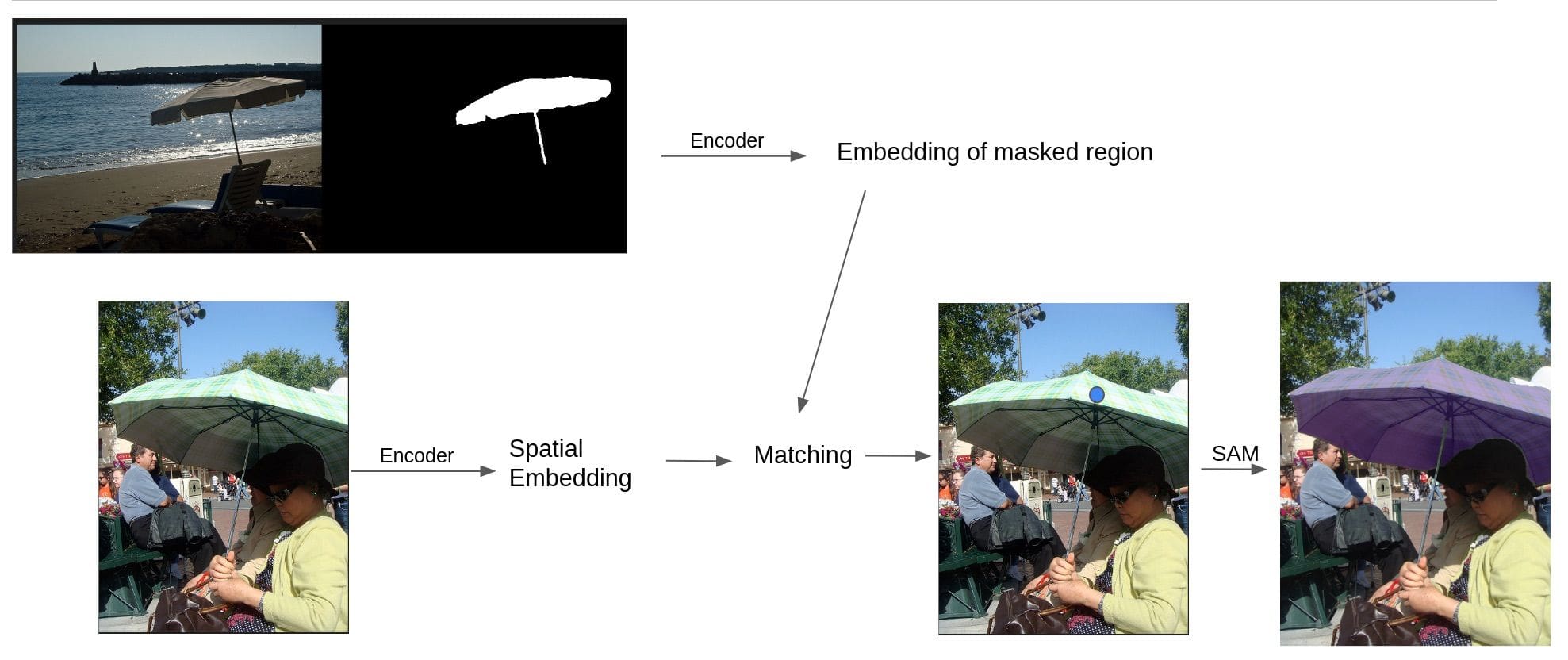 From our perspective, the most exciting capability of SEEM is its segmentation based on an exemplary image. This feature enables one-shot inference, where a reference image with the desired object’s mask is provided only once. Subsequently, any number of images containing the desired object can be processed without the need for supervision or additional prompting.