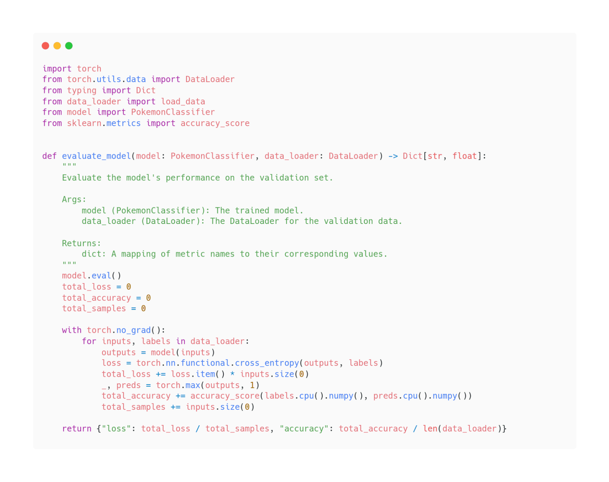 For example, this is what the evaluate.py file looked like before processing: