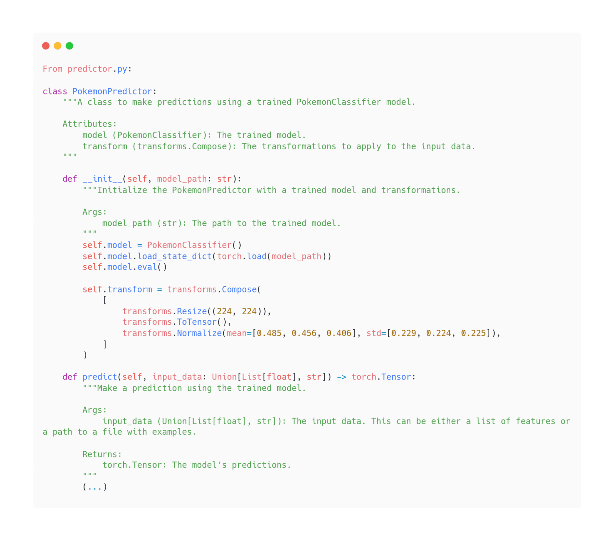 The case is slightly different with classes. In this case, in addition to the class signature and docstring, we also store the full __init__ method so that Code Writer knows the contents of that class. As for methods, we process them in the same way as functions. This is what it looks like before splitting: