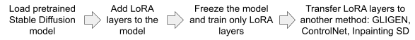 However, the most remarkable aspect of LoRA is its adaptability to pre-trained weights. Despite the existence of various methods built upon Stable Diffusion – ControlNet, GLIGEN, etc. – and each functioning differently, the cross-attention layers connecting a textual prompt with an image maintain a consistent structure and remain a crucial element. As a result, the weights trained using LoRA on one model can be seamlessly transferred to another model, even if these models represent different methods. This interoperability showcases the versatility of LoRA and its ability to facilitate knowledge transfer across diverse model architectures.