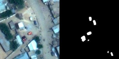 The solution for the waterway class was a combination of linear regression and random forest, trained on per pixel data from 20 input channels. Such a simple setup works surprisingly well because of the characteristic spectral response of water.Large and Small Vehicles