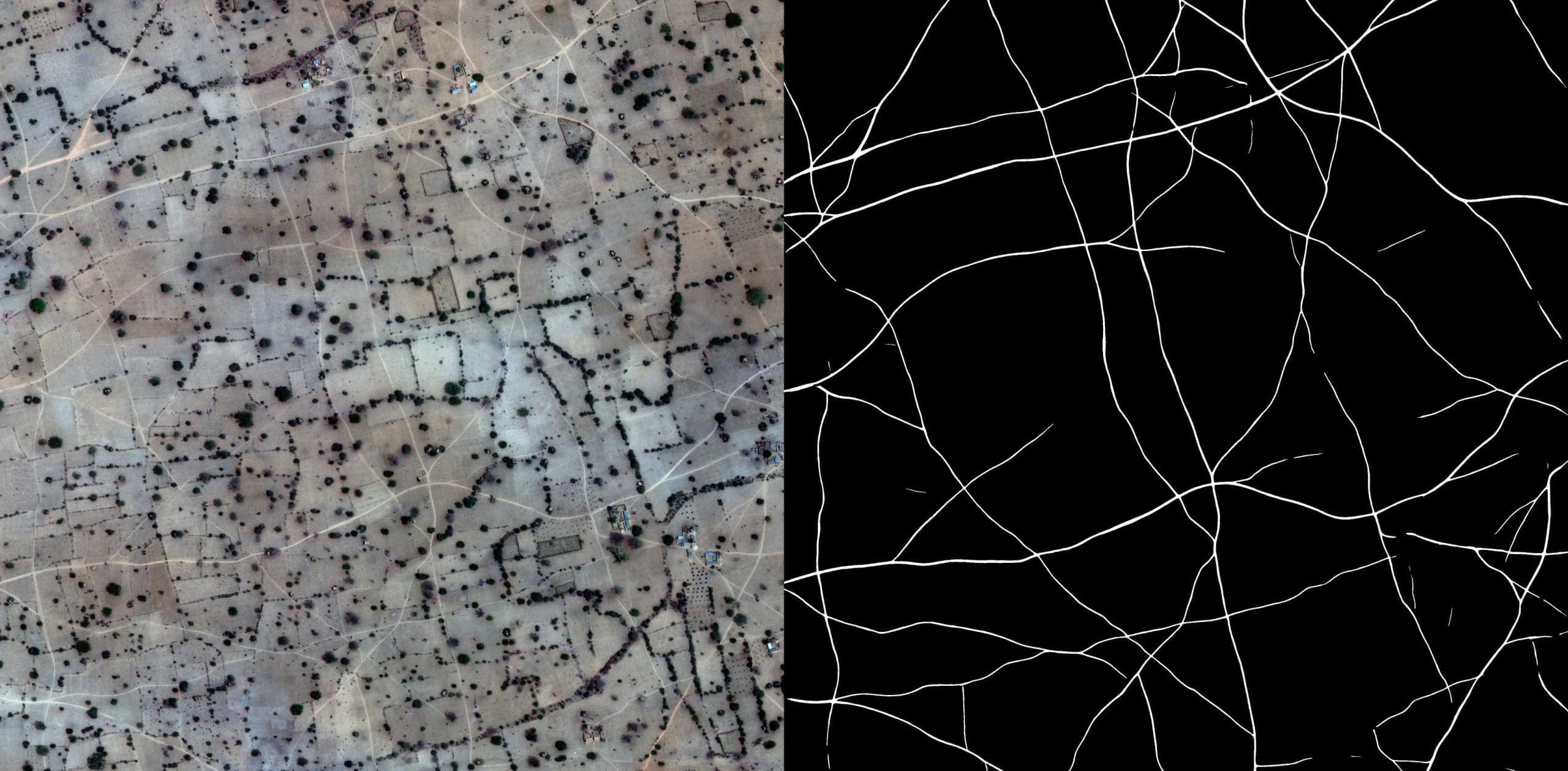 These objects were not completely disjoint – you can find examples with vehicles on roads or trees within crops. The distribution of classes was uneven: from very common, such as crops (28% of the total area) and trees (10%), to much smaller such as roads (0.8%) or vehicles (0.02%). Moreover, most images only had a subset of classes.