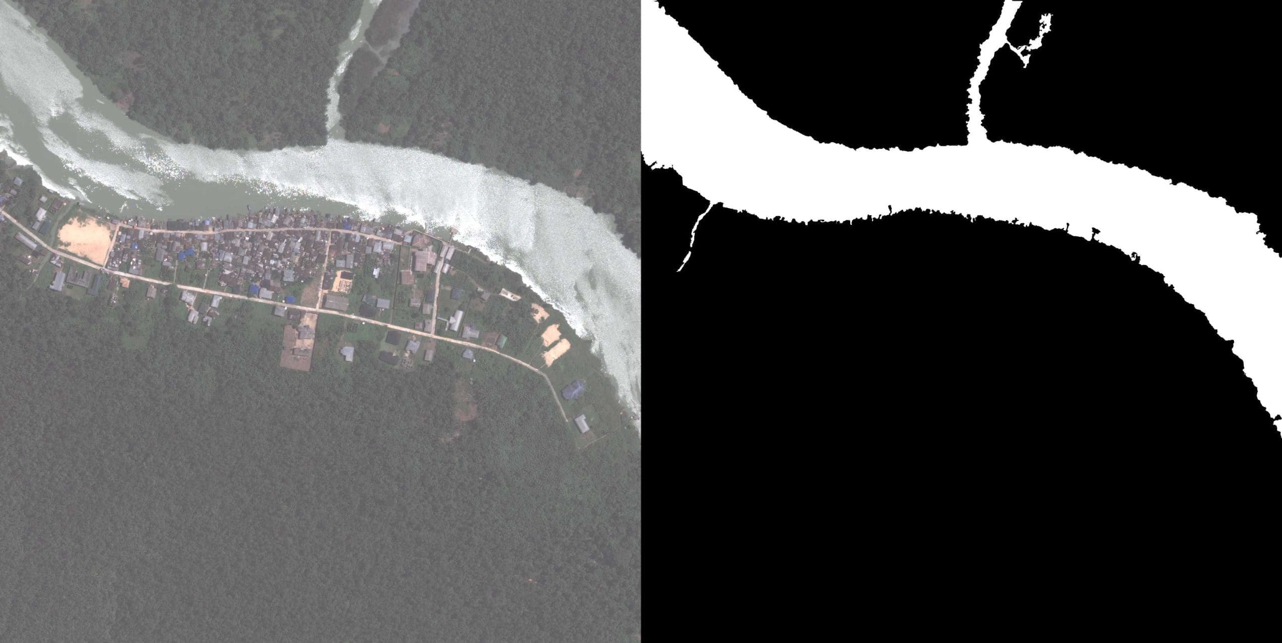 For these seven classes we were able to train convolutional networks (separately for each class) with binary cross entropy loss as described above on 20 channels inputs and two different scales (1024 and 2048) with satisfactory results. Outputs of the models were simply averaged and then post-processed with hyperparameters depending on particular classes.Waterway