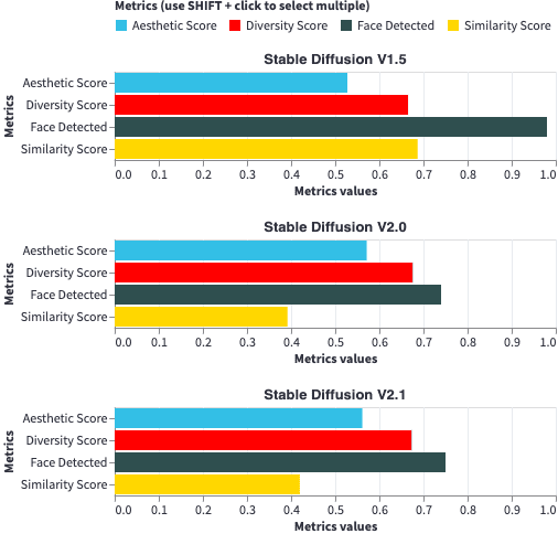 Evaluation metrics are a critical but problematic element of generative model assessment. In our previous blog post, we introduced and evaluated similarity and aesthetics metrics. We encourage you to check it out in detail. In addition to these two metrics, there is another crucial indicator of model quality, namely output diversity.