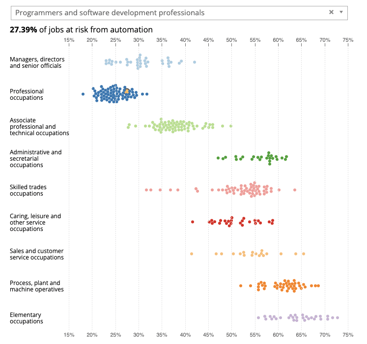 According to a 2019 report by the UK Office for National Statistics, software engineers face a 27.4% probability of their roles being replaced by robots. Yet this statistic is not exclusive to software engineers: many occupations across various sectors have seen a similar or higher figure projected. Despite being harbingers of fear, these statistics need to be understood in context. They certainly don’t consider the current limitations that AI possesses, nor its inability to replace key human skills.