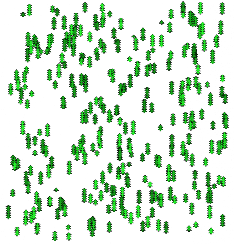 The size will be translated into the number of segments of each single tree. Width of a tree is fixed and height is proportional to the size.