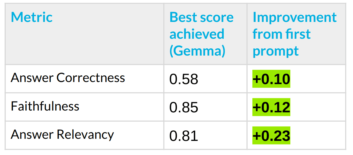 Injecting these into the prompt helped (and in some cases wholly removed) the issues when manually scrolling through the answers. With the above examples and some techniques like ‘use step-by-step reasoning / read carefully,’ we were able to improve from naive prompts.