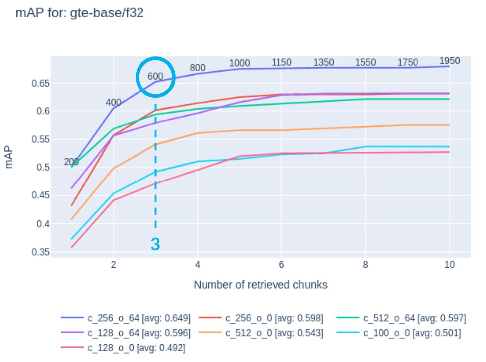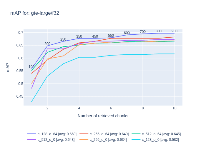 - mAP 0.65 at 3 chunks and 600 tokens
