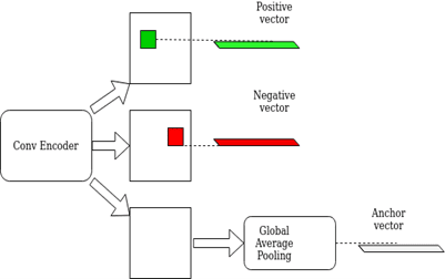 The optimized target function in this case is triplet margin loss – a differentiable function that yields small values if the vector representing the positive region is close to the anchor pattern vector (the logos are similar) and the negative region vector is far away from it (they are not similar).