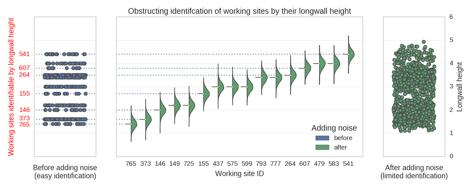 After injecting some randomness, it is no longer possible to exactly identify location based on a longwall’s height. However, the essential information is still conveyed.
