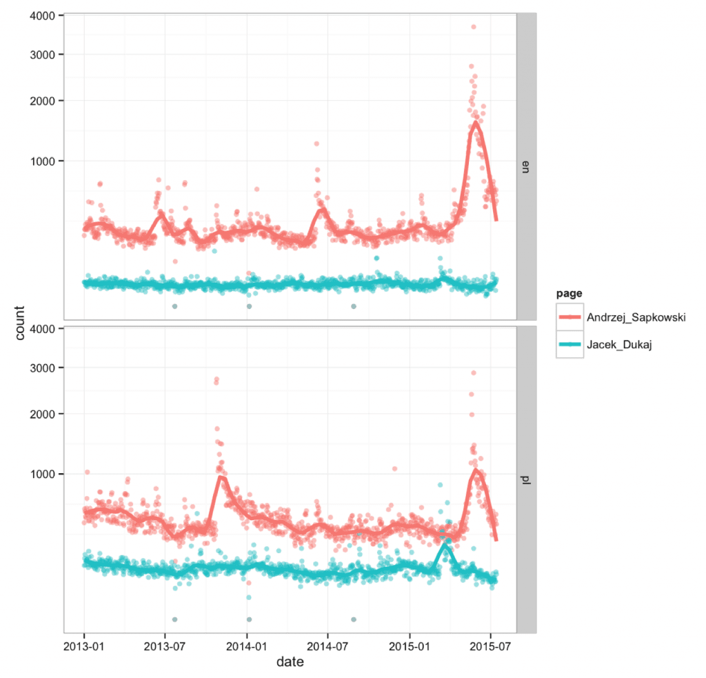 wp = wp_trend(page = c("Andrzej_Sapkowski","Andrzej_Sapkowski","Jacek_Dukaj", "Jacek_Dukaj"),