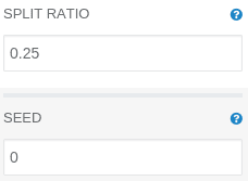 To perform a fair evaluation of our model, we need to split our data into two parts: a testing dataset and a training dataset. That task could be accomplished by using a Split operation. To divide the dataset in ratio 1 to 3, we do need to modify its default parameters: