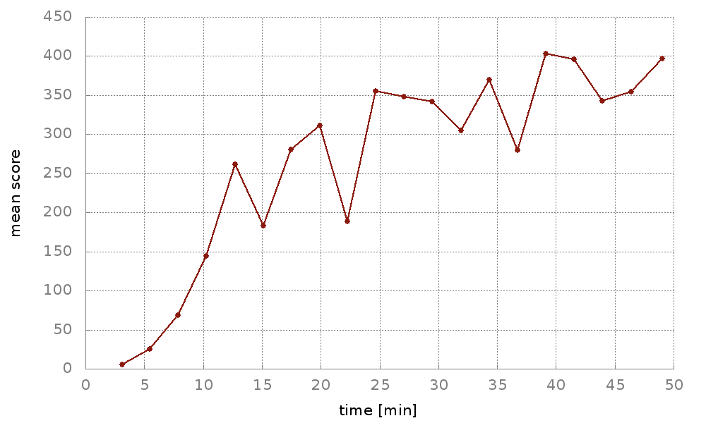 Using Neptune, a tool developed here at deepsense.ai, we were able to proactively track the performance of our agents. This enabled us to instantly verify if a certain feature of the algorithm works as expected. In Neptune, we could observe our agents’ real-time scores along with many other experiment-related metrics that we later used to optimize the algorithm. The graph below shows training curves from 10 different experiments on the Breakout game. Graphs were updated live in Neptune as the training went on.