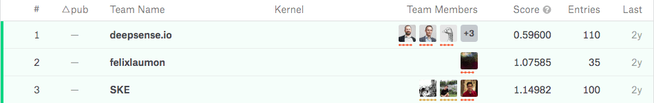 Kaggle Leaderboard for the Right Whale Recognition competition