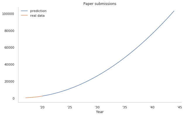 2nd law of paper-dynamics tells us that the number of submitted papers will reach 100.000 in 24 years. That’s some serious growth!